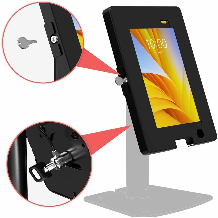 | Marketing Information | Interior Cable Routing Designed Specifically for Zebra ET40 Flexible Portrait or Landscape Mounting Interior Cable Routing Anti-Theft Deterrent Lock and Key Premium Heavy-duty Locking Enclosure VESA 75mm x 75mm Capability, for Easy Mounting to Arms and Other VESA Equipment Access to Ports, Buttons, and Scanner |