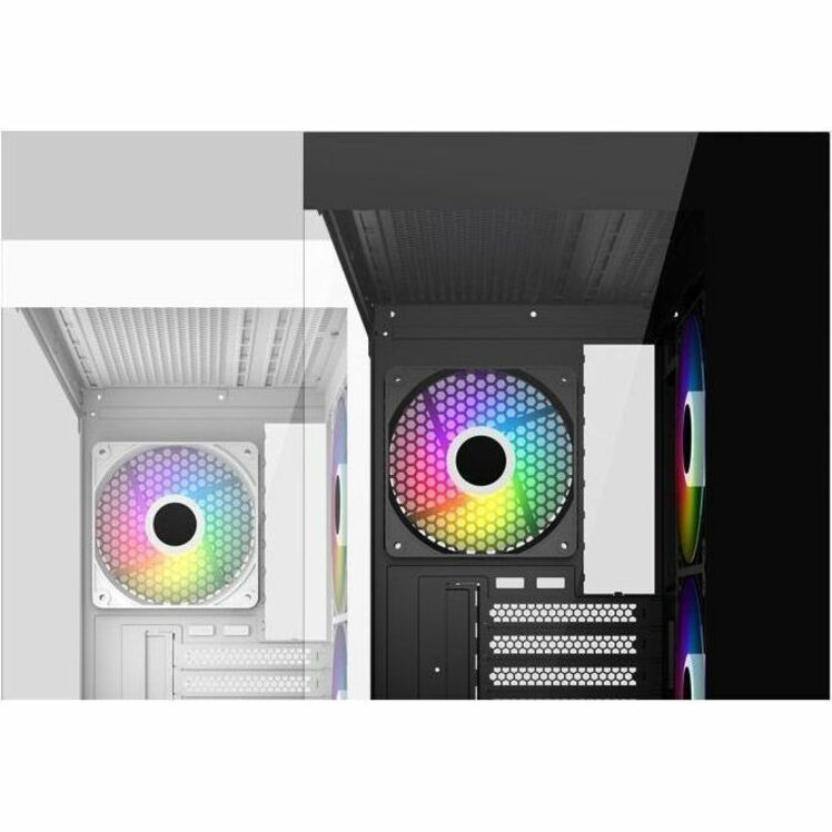 The side features dual reverse ARGB fans, while the rear is equipped with a ARGB fan.