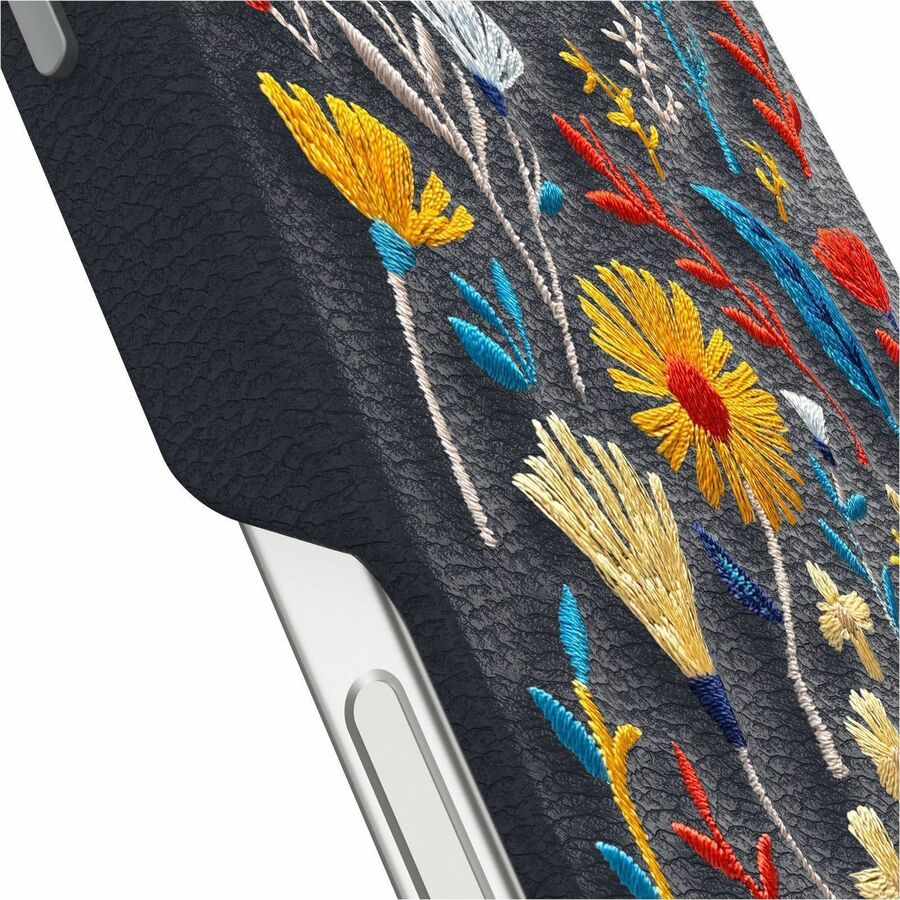 For Apple iPhone 16 Pro Max Smartphone - Embroidery Pattern - Enchanted Garden (Blue) - Drop Resistant - Cactus Leather, Polyurethane, Polyester - Wireless Charging Compatible