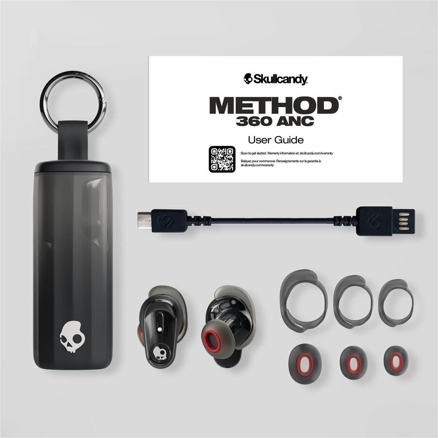 | Marketing Information | PREMIUM SOUND FOR THE PEOPLE Experience the perfect fusion of best-in-class sound and fearless design. Our latest earbud doesn't just keep up - it leads. Introducing Method 360 ANC with Sound by Bose: engineered for incredible audio and nonstop action. | SOUND BY BOSE We teamed up with Bose to bring you a high-fidelity audio experience defined by clarity of sound and depth of range. Everything from ear gels to audio architecture is optimized for ideal performance. No compromises, just great sound. SUPERIOR ACTIVE NOISE CANCELING Welcome to next-level noise cancelation. Eliminate the world around you and sink into an undisturbed listening experience. Need to tune into your surroundings? Turn on Adjustable Stay-Aware Mode instead. CLIP-ANYWHERE DESIGN Clip It and Rip It with effortless carry and stand-out style. Our signature slider case and O-ring design clips to your backpack, key ring or pants so it's always close-at-hand and ready for action with a look that shouts Skullcandy. TAP, TUNE, TRANSFORM Unlock Method 360 ANC's full potential with the Skull-iQ App. Choose one of 3 preset EQ's or customize your own, reconfigure the button functions, adjust your Stay-Aware Mode and more. CUSTOMIZE YOUR FIT Included ear gels and fit fins in three sizes let you dial in the perfect fit, so you stay locked in and comfortable no matter how hard you go. |