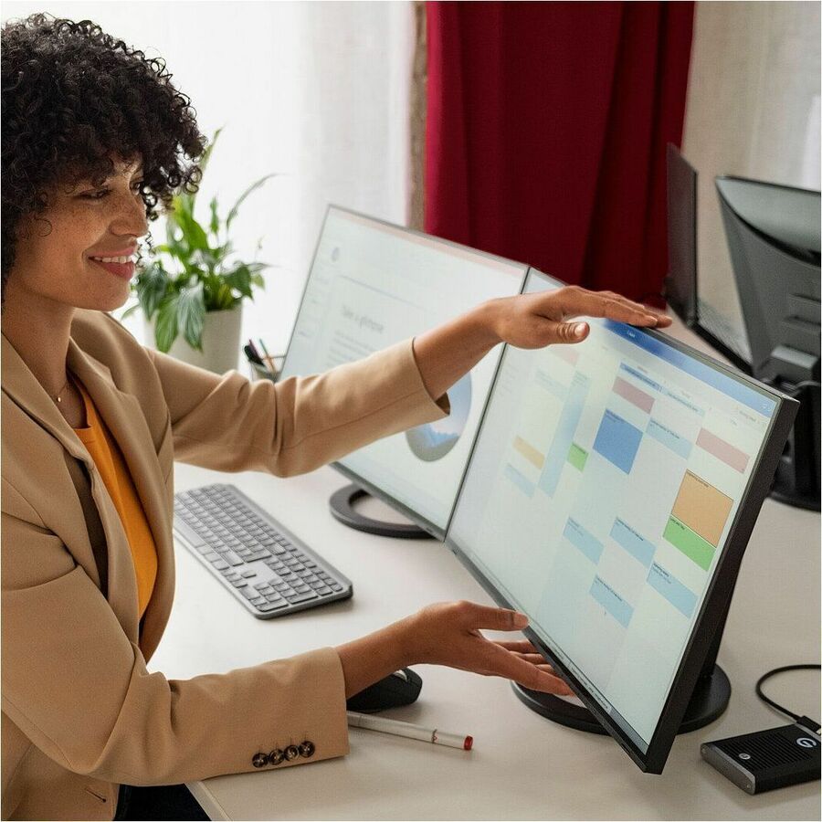 | Marketing Information | High Resolution for Efficient Multi-Tasking With its 27-inch WQHD (2560 x 1440) resolution, the EV2720S offers 1.8 times more space than conventional Full HD (1920 x 1080) monitors. This allows you to easily display multiple windows on the screen, enhancing multi-tasking efficiency and reducing the need for frequent switching and scrolling. Get Connected. Get Started. The monitor is equipped with a USB Type-C® connection that allows users to display video, playback audio, transmit USB signals, and supply power to connected devices. This convenient multi-purpose connectivity makes it faster and easier to connect your laptop when moving between workstations or working away from the office. Power Delivery The 70 watt power delivery via USB Type-C reliably charges laptops. This eliminates the need for a laptop's bulky power supply unit, freeing up space in your bag and on your desk. Convenient Access to Peripherals While many modern laptops are designed to be thinner and more portable, they often have limited connectivity options for peripherals. Connecting a laptop to the monitor via USB Type-C provides access to a hub with four USB Type-A ports for easily connecting an external keyboard, mouse, or storage device. A Better Working Experience Workstyles are becoming more diverse, with trends in open-plan offices, BYOD (bring your own device) meeting rooms, and remote work. The EV2720S offers features to enhance productivity, comfort, and convenience in these environments. Make the Most of Your Meetings The monitor's Picture-by-Picture (PbyP) capability helps to streamline your presentations and save valuable meeting time by removing the need to switch input sources. This convenient function makes it possible to compare data with a coworker side-by-side, as well as to share information from multiple sources during presentations. Versatile Stand for Optimal Positioning The stand offers height adjustment, tilt, and swivel. It also supports pivot rotation for displaying long web pages or for convenient viewing in a multi-monitor setup. This flexibility allows you to position the screen to suit any workstyle, whether you are sitting or standing at your desk. Comfortable Positioning in Modest Workspaces A laptop can fit comfortably under the monitor with the stand set to its maximum height of 169 mm. This allows you to take advantage of a compact, multi-screen configuration without taking up valuable desk space. Connectivity and Flexibility The monitor is equipped with USB Type-C, DisplayPort, and HDMI® video inputs. This is useful in hot desking environments or shared workspaces where a range of devices are frequently connected. Aesthetically Pleasing Design A monitor's aesthetic can go a long way in creating a more comfortable atmosphere. The monitor's minimalistic design and ergonomic functions allow it to fit naturally in your work environment, whether at home or in the office. Bezels that are Barely There The monitor features a three-sided frameless design for a sleek and minimalistic aesthetic. With minimal distance between the display area and the bezels, it seamlessly integrates into any environment. Color Coordination to Suit Your Workspace The monitor cabinet is available in both white and black, with matching stand and cables. Whether you prefer a bright, inviting aesthetic, or a chic, relaxed vibe, you can choose the color that best complements your workspace. |